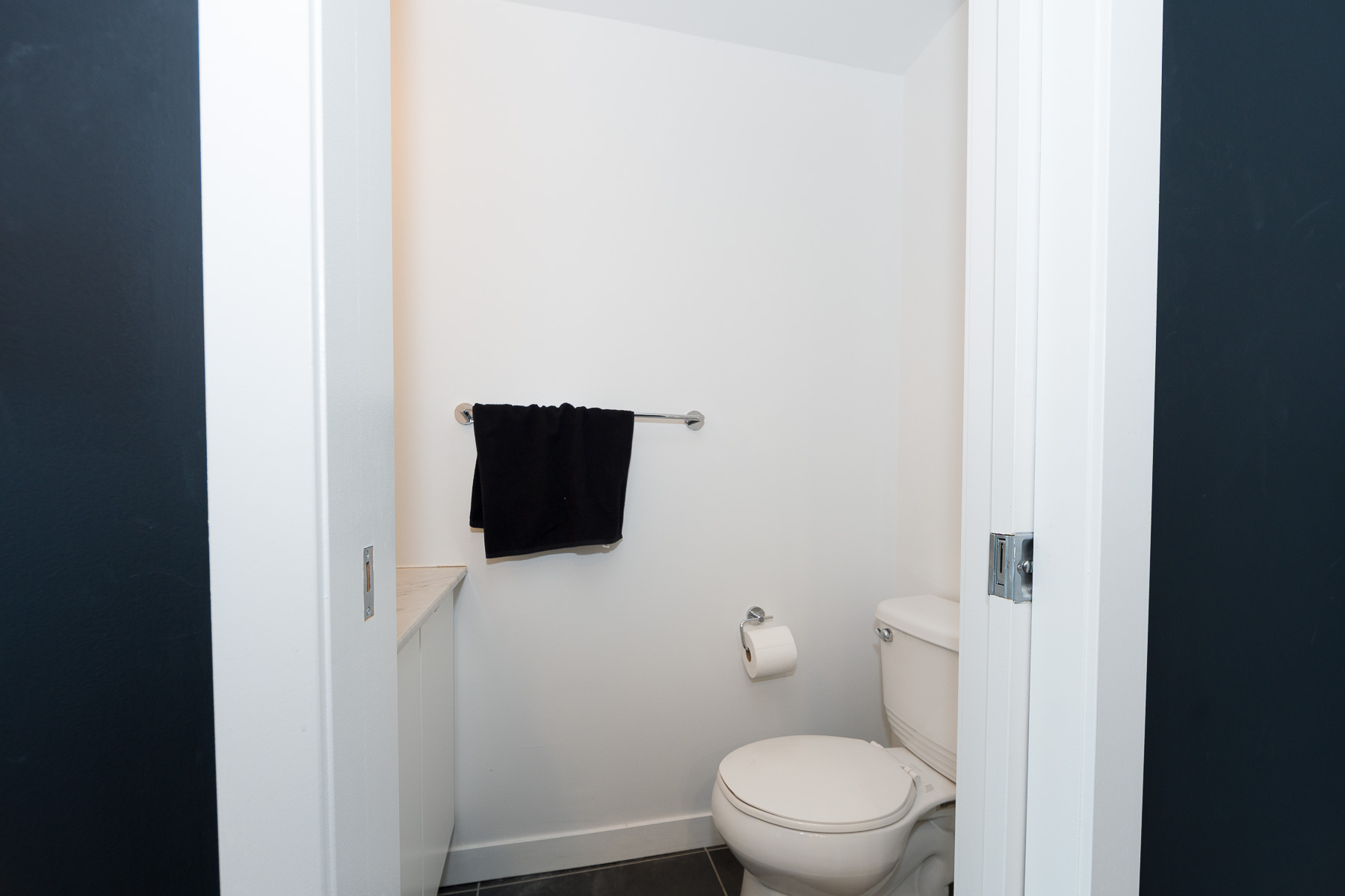 The main level is built for real living. You’ve got an oversized open concept living and dining area that doesn’t feel tight or restrictive, paired with a full sized kitchen that offers the counter space and storage and really ties everything together. There’s also a powder room on the main floor, which is a huge bonus when you have guests over.